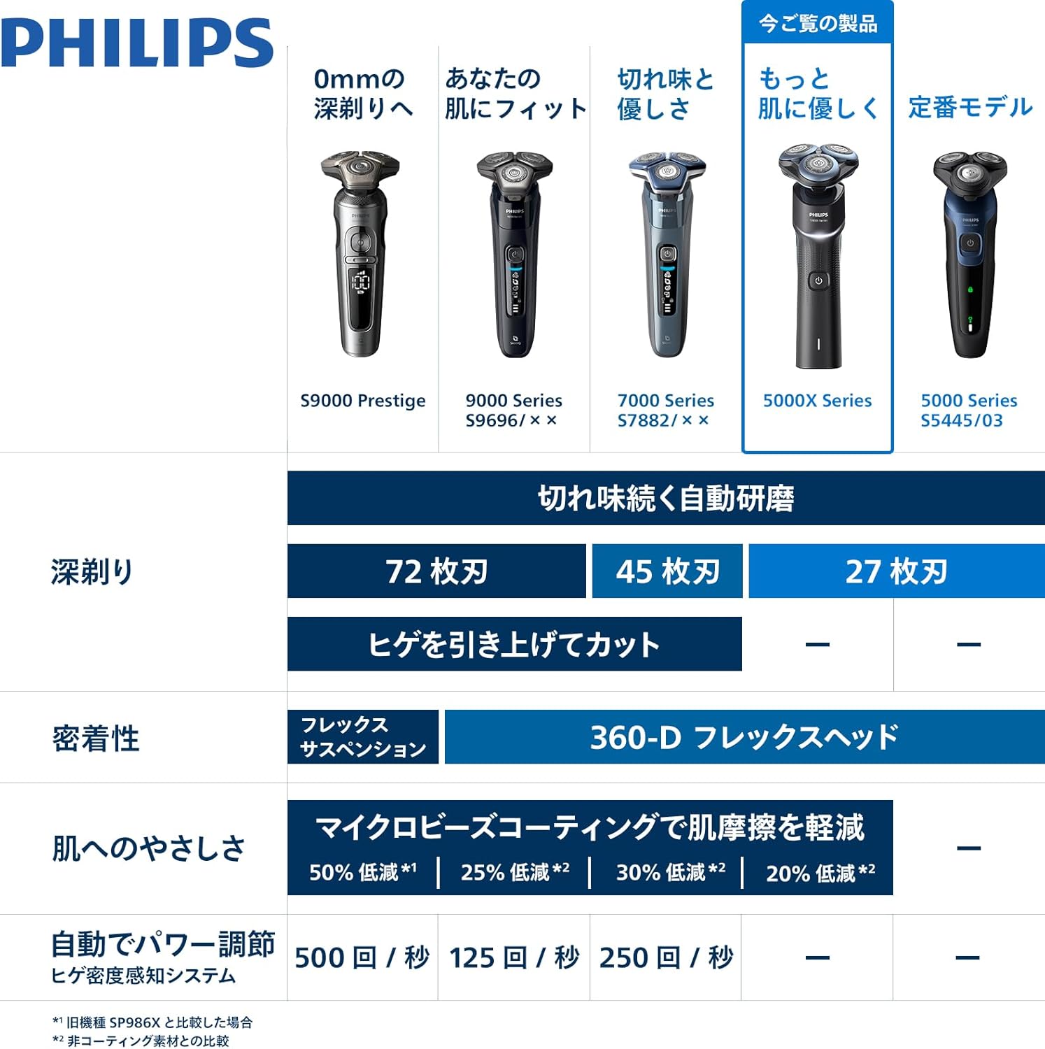 マイクロビーズコーティングで20%肌への負担を低減。柔軟性に優れた360-Dフレックスヘッドが360度可動。毎分55,000回カットの27枚刃搭載。IPX7防水仕様&本体丸洗い可能。USB充電対応。