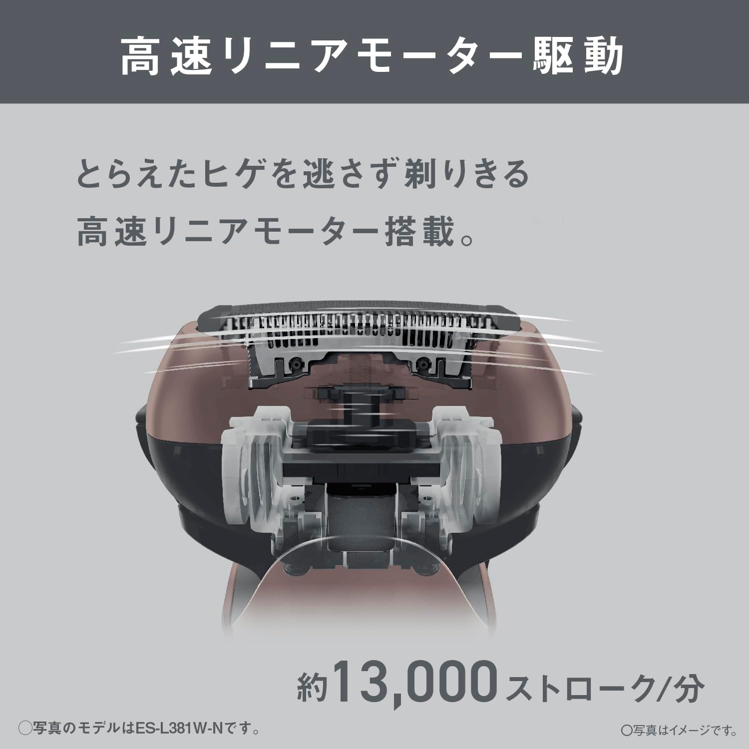 リニアモーター搭載でパワフルに剃りきる。3枚刃×リニアモーター約13,000ストローク/分=約39,000カットアクション/分でパワフルに剃りきる。ウォータースルー洗浄。付属品:ACアダプター/専用オイル(シェル オンジナ オイル 32)/掃除用ブラシ。本体寸法:高さ15.5×幅6.4×奥行5.0cm。質量:約145g(キャップ除く)。充電式・急速1時間充電。