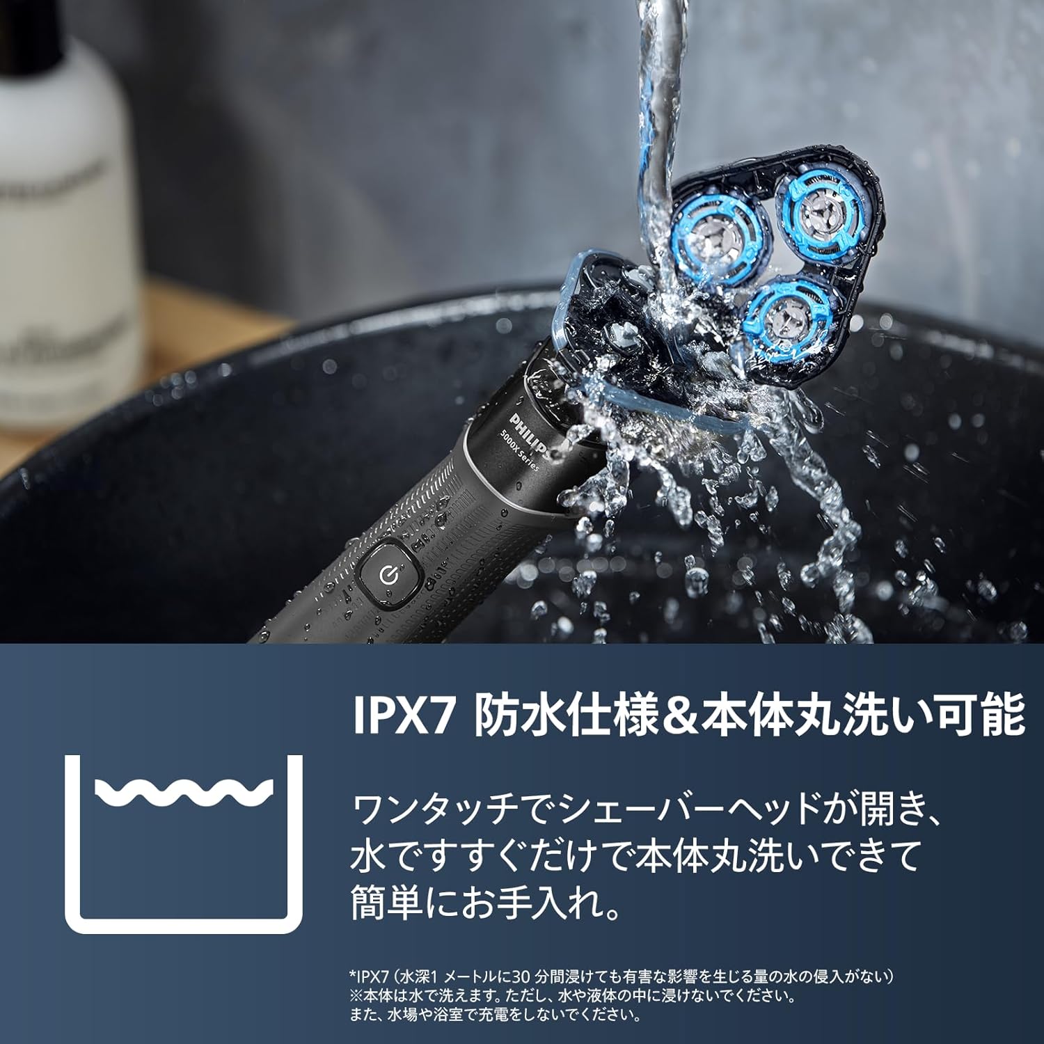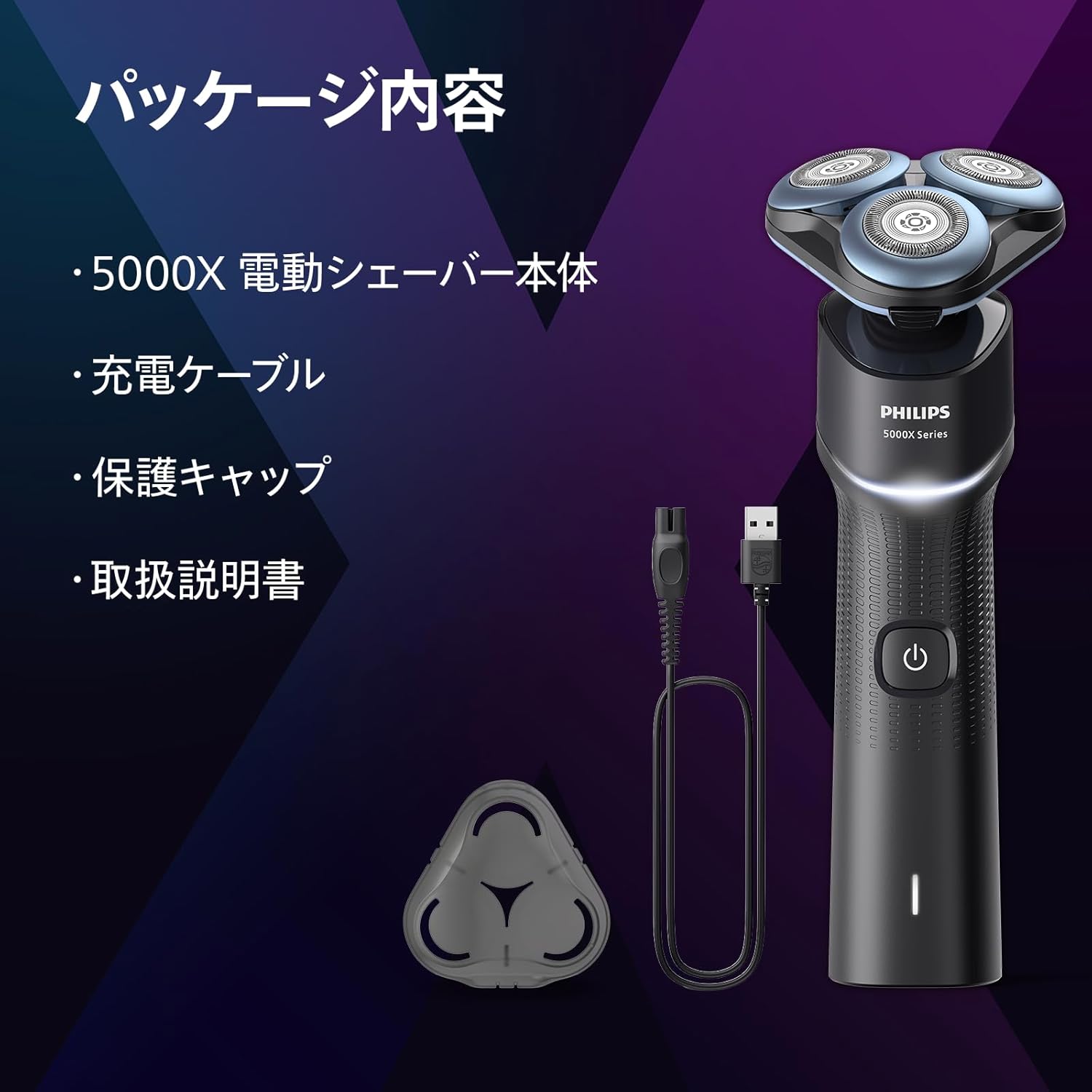 マイクロビーズコーティングで20%肌への負担を低減。柔軟性に優れた360-Dフレックスヘッドが360度可動。毎分55,000回カットの27枚刃搭載。IPX7防水仕様&本体丸洗い可能。USB充電対応。